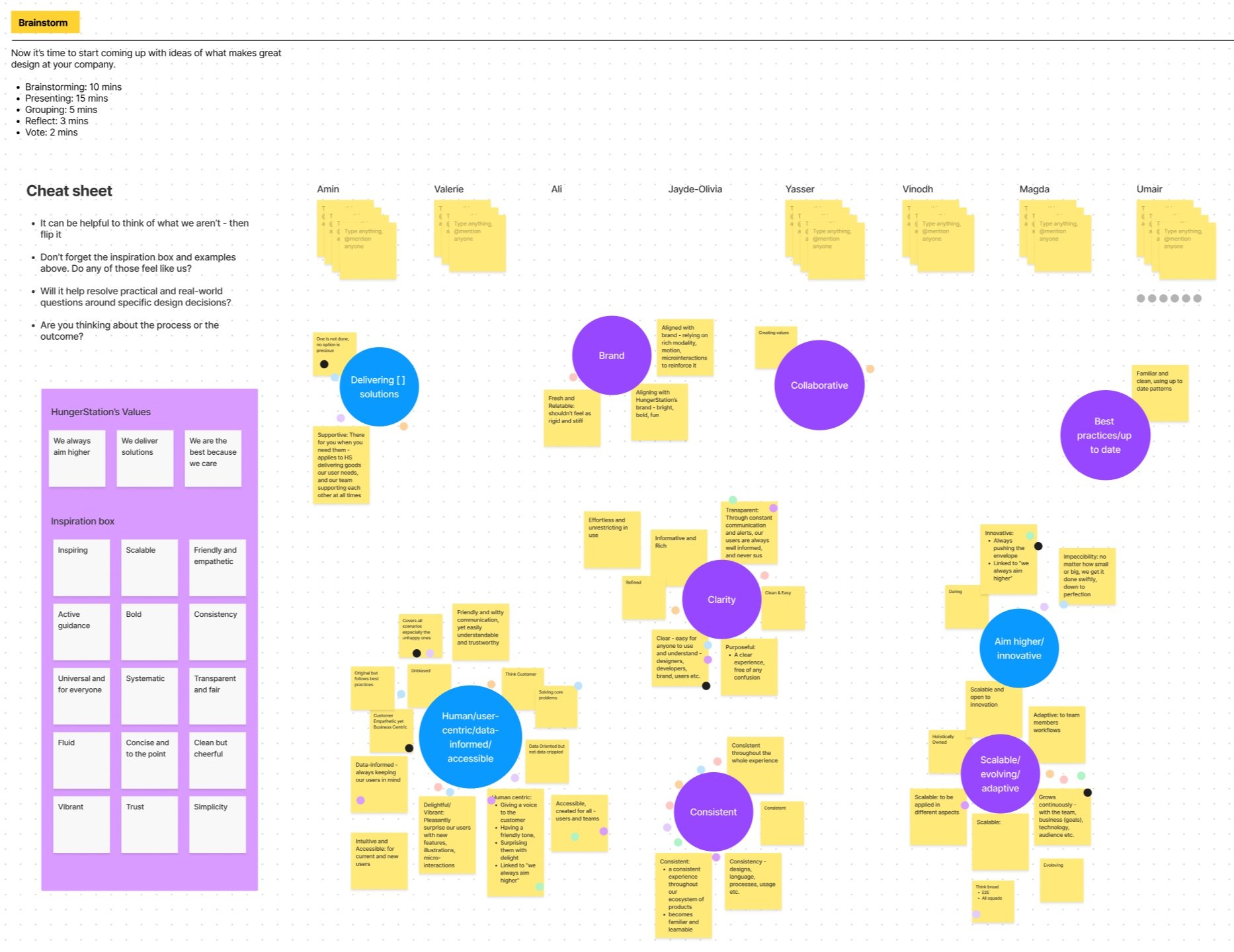 Group ideas into themes reflecting company values
