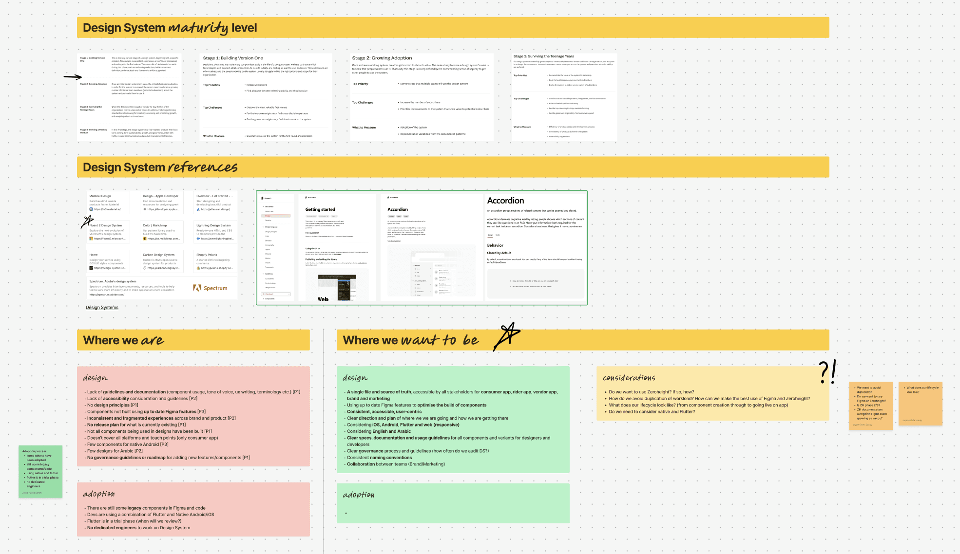 Using the Sparkbox Design System Maturity Model, I assessed where we were and aligned with stakeholders around a shared starting point. We sat between Stage 1: Building and Step 2: Growing.