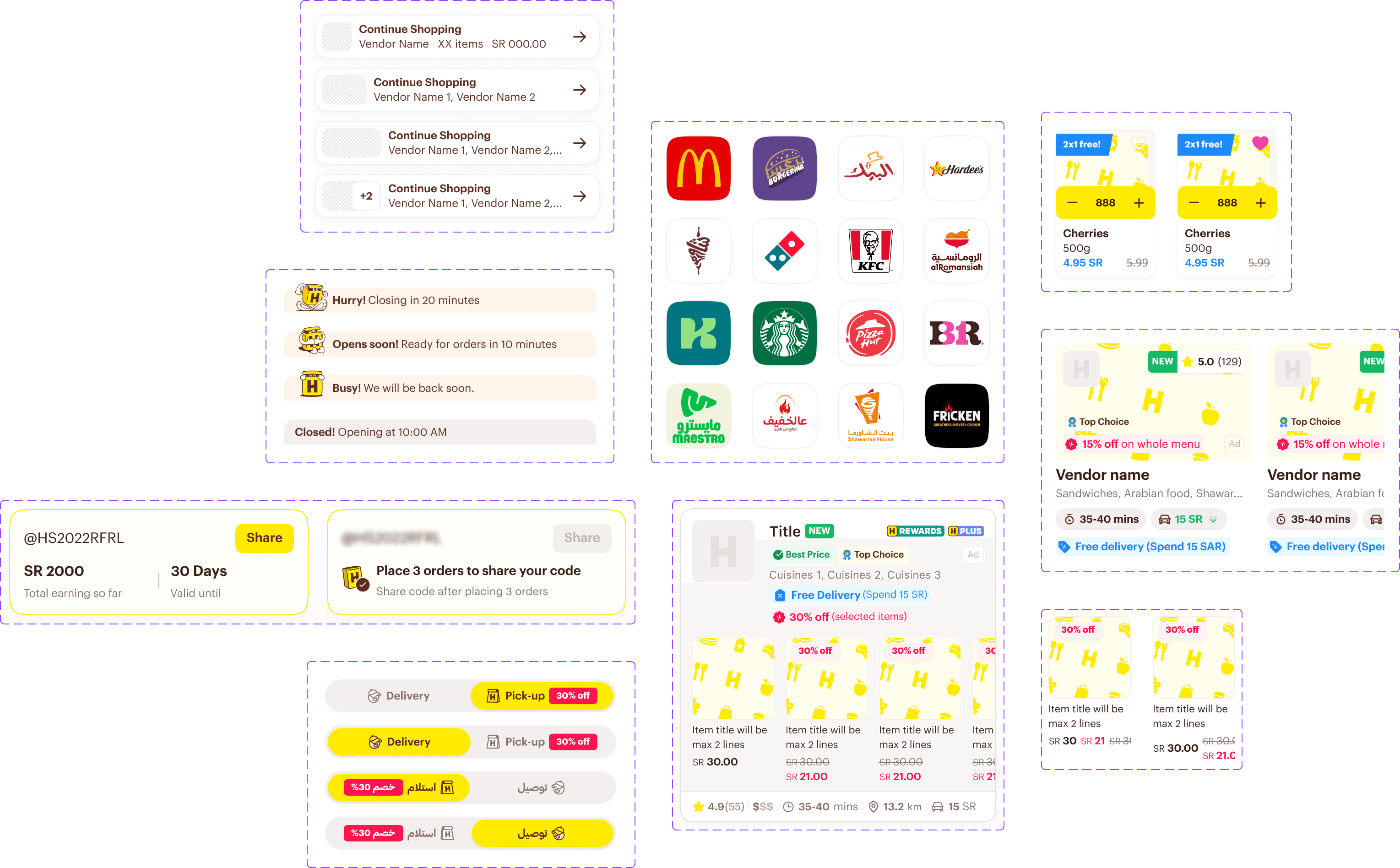 I led the rebuild of Hungerstation's fragmented, inconsistently used design system into a unified, documented, cross-platform source of truth. The team audited all components, defined principles, aligned naming and tokens, added RTL support and introduced governance and adoption processes.