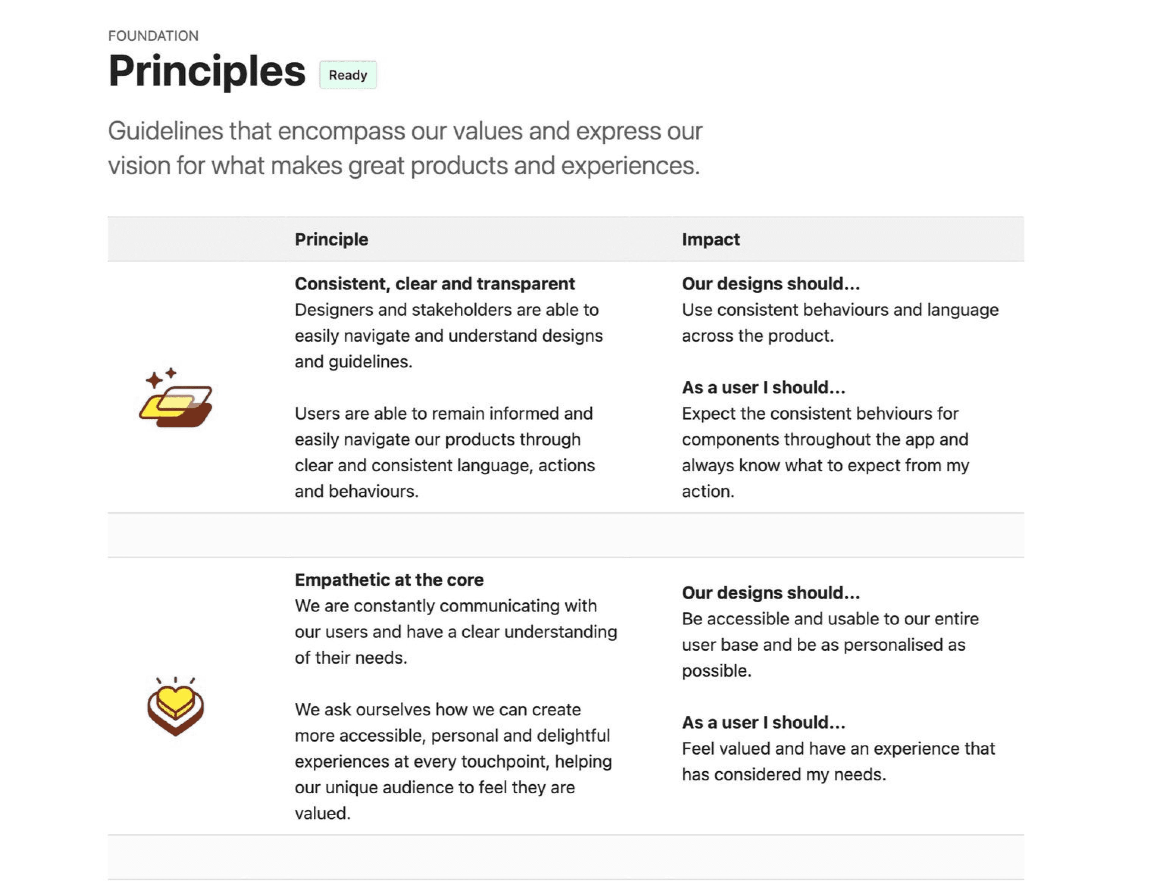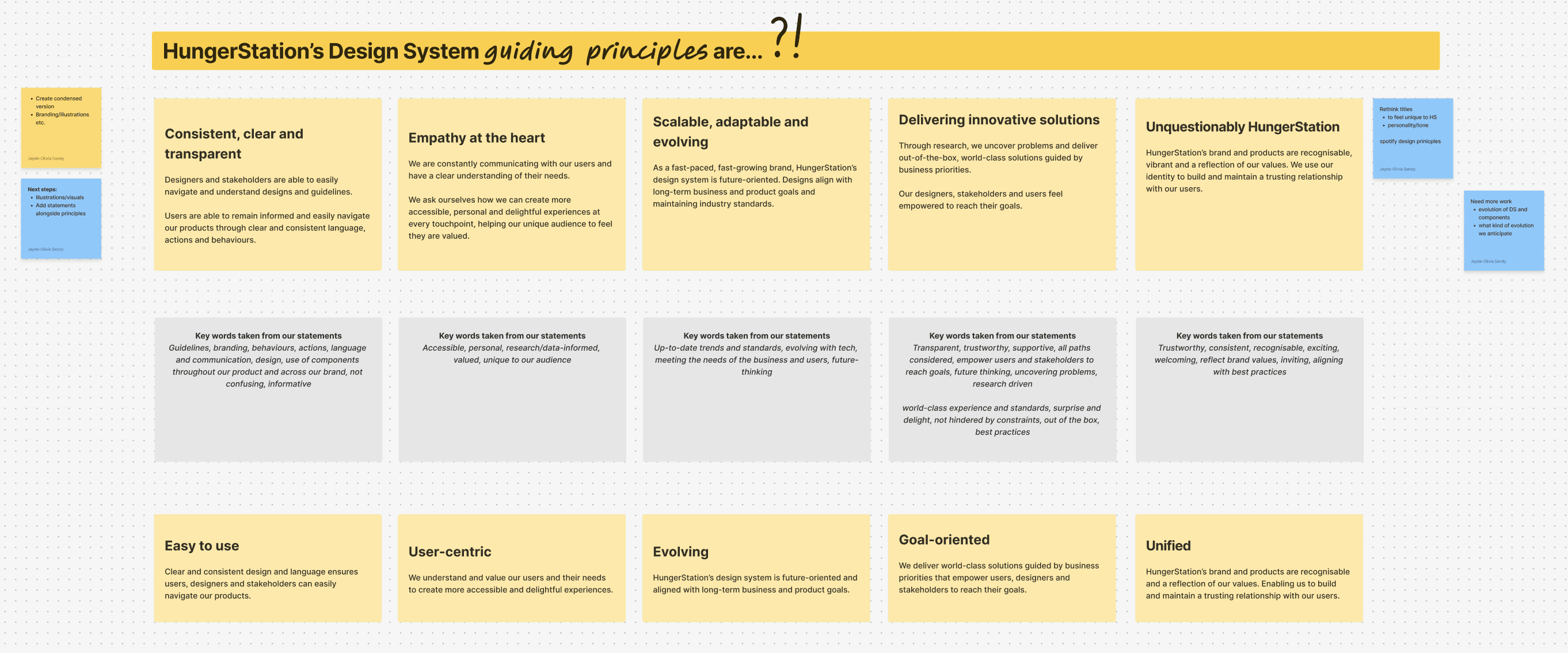 To align the team and build with intention, I facilitated an engaging design principles workshop that included; ensuring the team understood the benefits of a design system, reviewing principles from top companies i.e. Salesforce Adobe and more, writing statements that should apply to us and our users.