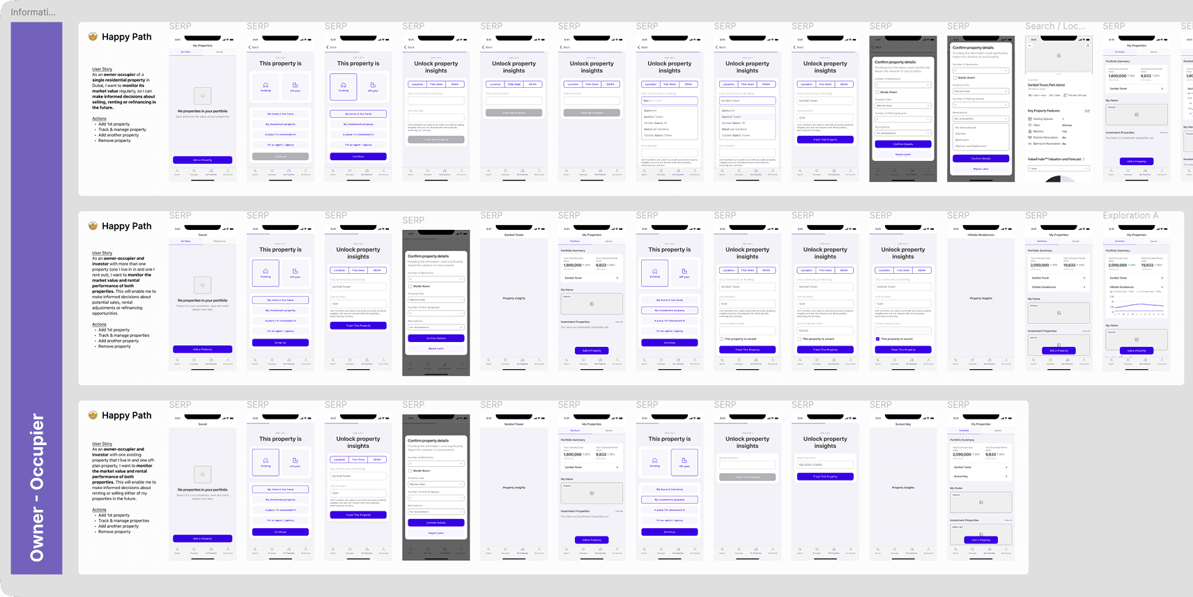 These insights directly informed MVP decisions, narrowing scope to valuation and portfolio tracking, with rental strategy insights planned for a future iteration.