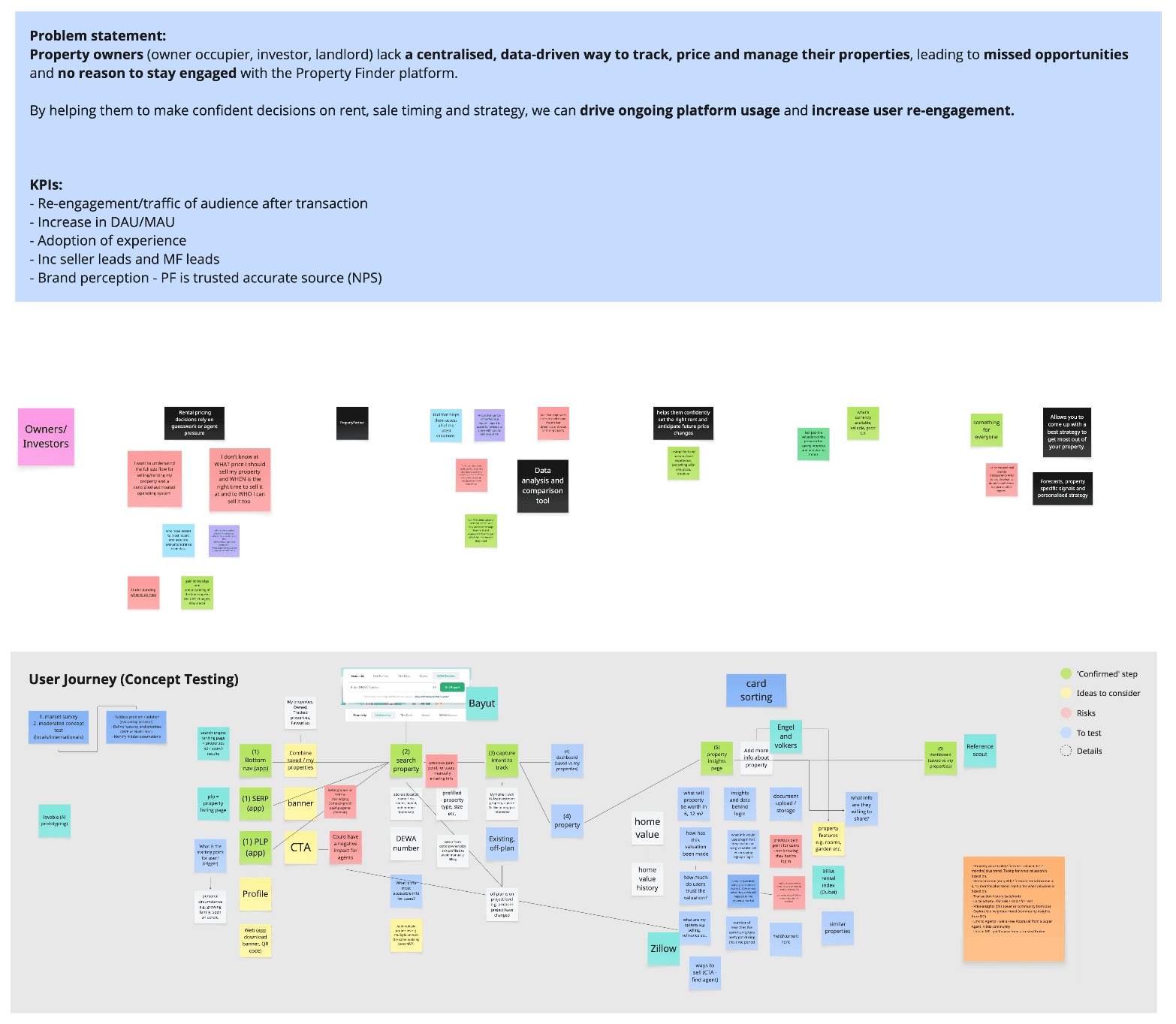 At Property Finder, the owner journey effectively ended once a property was rented or sold. Owners had no centralised, data-driven way to track performance, price assets or manage properties, creating a clear gap in post-transaction engagement.